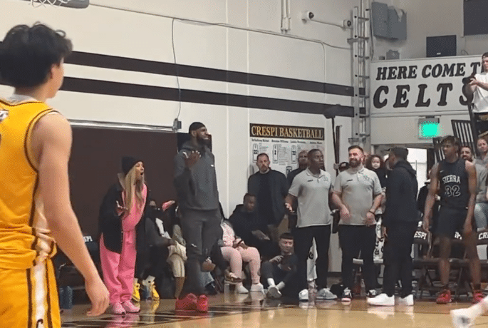 今天湖人队没有比赛,詹姆斯夫妇前往现场观看布朗尼打比赛,比赛期间,布朗尼接队友助攻,完成疯狂的双手空接暴扣,布朗尼这一扣点燃球馆,布朗尼挂在篮筐上,狠狠地拍打篮板庆祝,裁判第一时间吹罚技犯,对此詹姆斯和萨瓦娜都十分不满,站在场边摊手抱怨,布朗尼则面带笑容,和队友撞胸再次庆祝。