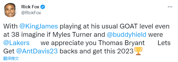 目前湖人19胜21负排在西部第12位,但湖人距离西部第6的快船仅仅只差1.5个胜场;本赛季托布场均拿到12.9分7.2篮板,投篮命中率68.5%,三分命中率46.7%。