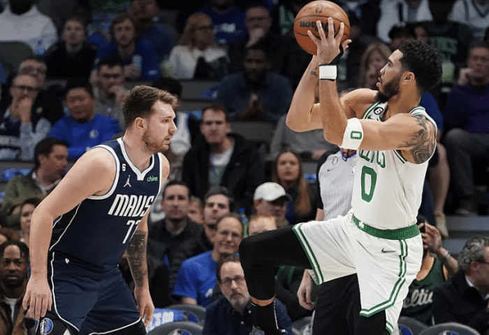首节比赛,独行侠进攻不顺,东契奇被凯尔特人防得很不舒服,第一节打满12分钟,3次杀到篮下得分,多次造犯规罚球得分,单节罚球7中5,强突造塔图姆犯规,后者沮丧把球扔向裁判吃到技犯;单节9投3中拿到11分3篮板,球队第一节20-29落后9分。