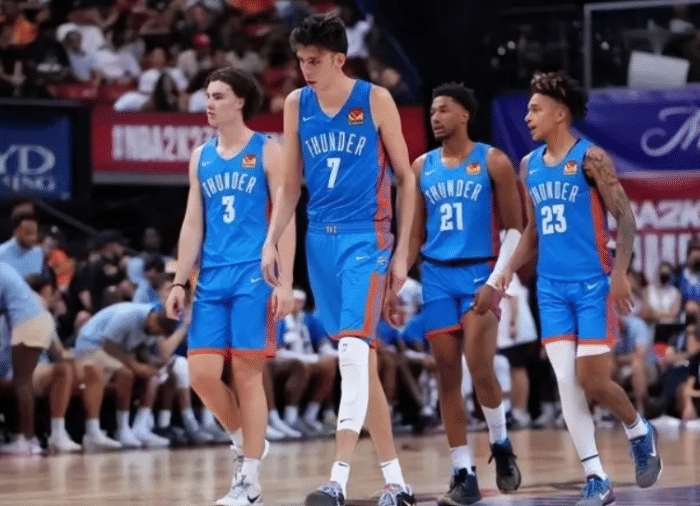 最近几个赛季的雷霆已经进入了彻底的重建,球队也是不断地在交易,为自己的未来做着准备,上个赛季雷霆的战绩为24胜58负,位列西部倒数第二,球队更是一度遭遇到了73分的惨败,球队已经进入到了摆栏状态,为的就是能够得到更好的选秀顺位,今年的选秀大会上,雷霆榜眼秀选中了切特-霍姆格伦、首轮11顺位选中奥斯曼-迪昂、首轮12顺位评选中杰伦-威廉姆斯、次轮34顺位选中杰林-威廉姆斯。