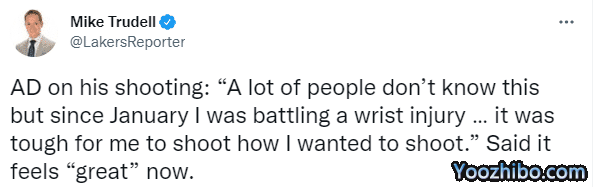 训练之后湖人将帅接受采访,谈到上赛季外线失准时,浓眉透露:很多人都不知道的是,自从今年一月份以来,我就一直在和我的手腕伤势做斗争了,这让我很难去做出我自己想要的投篮。这不是我投篮糟糕的借口,但这确实影响了我。不过现在我的感觉很好。