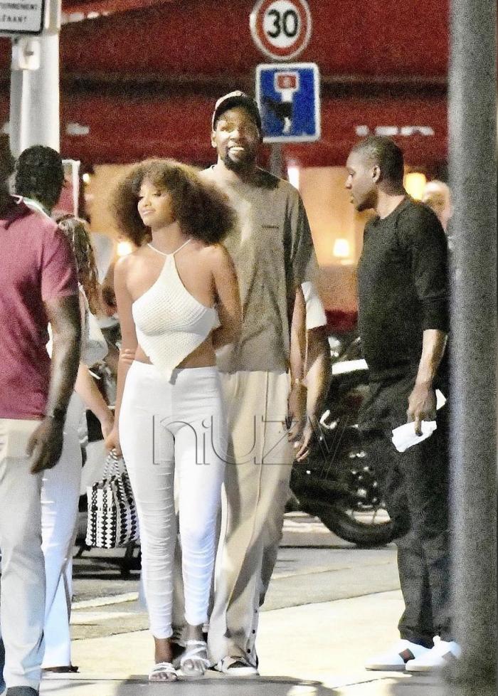 杜兰特身穿深色T恤和米白色运动裤搭配一双板鞋,戴着棒球帽与好友一起现身法国街头,期间杜兰特与友人相谈甚欢,满脸笑容十分开心;值得一提的是,杜兰特一行众人漫步,他们偶遇一位“蜜桃臀”美女,等他们走远了,她仍站在后面看。