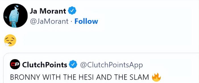 詹姆斯也在社媒上第一时间发推,转发布朗尼的扣篮视频,并写道:“我的老天啊!布朗尼!(配上多个惊讶表情包)” 他还转发了自己和布朗尼扣篮的对比视频。库里、莫兰特、克劳福德等人也纷纷转发扣篮视频,称赞布朗尼不可思议的表现。