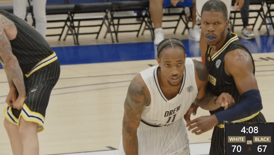 24直播网08月14日讯,德鲁联赛季后赛正式开打,公牛球员德罗赞身穿白色11号球衣,再次出战德鲁联赛,全场拿到35分7篮板,带领MMV Cheaters队击败Undisputed队;德罗赞大秀中投杀招,末节攻防一体,一个回合连续三次大帽太疯狂,关键时刻连续得分统治比赛。