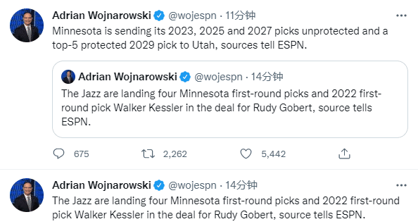 爵士把戈贝尔送到森林狼,得到比斯利、贝弗利、凯斯勒(今年的首轮22顺位)、范德比尔特、莱安德罗-博尔马罗、4四个首轮签(23、25和27年无保护以及29年前五保护)以及26年的首轮互换权利。