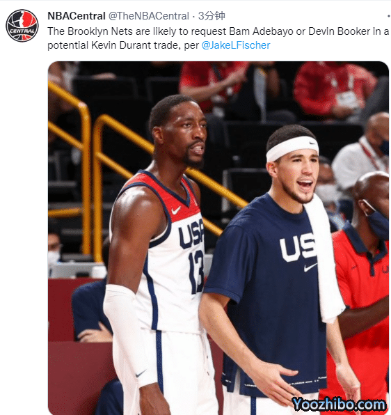 杜兰特申请离队,他最想去的球队是太阳和热火,据Brett Siegel报道,如果条件允许的话,篮网似乎非常希望用杜兰特从太阳换回艾顿以及一些选秀权,还记者爆料篮网向太阳索要布克;目前太阳已经瞄准杜兰特,但他们不想为了杜兰特一人而毁了一支球队。