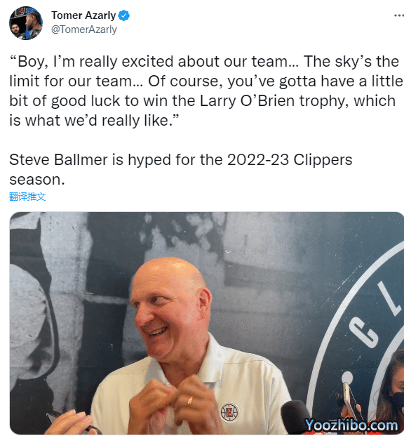 对于新赛季的快船,鲍尔默难掩激动和兴奋之情,表示:我真的为我们的球队感到兴奋,天空才是我们球队的极限……当然,要想赢得拉里-奥布莱恩奖杯,你还得有点运气,这才是我们真正想要的。