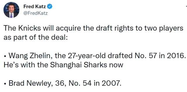 尼克斯:得到并裁掉瓦伦丁,王哲林预计不会加盟