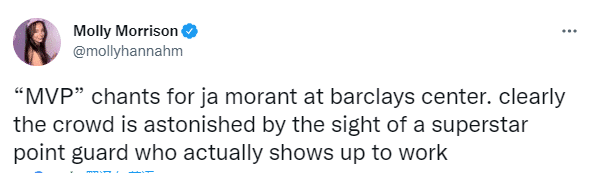 莫兰特的表现完胜杜兰特和哈登两大巨头,更是打得篮网主场的球迷集体倒戈,为莫兰特高呼MVP;莫兰特滑翔劈扣让杜兰特沦为背景板,阿杜目送莫兰特战斧暴扣。