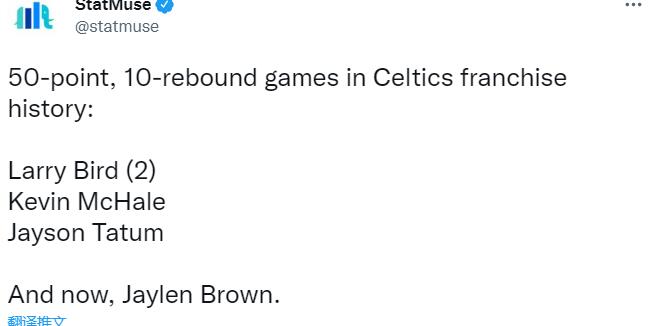 同时,也成就了对手探花秀的个人生涯首个50+!在比赛获胜之后,本场50分先生也非常兴奋,他怒吼庆祝来之不易的胜利。在个人的生涯之夜,为球队带来一场不可思议的逆转胜利,这是每个球员都在等待的时刻,今晚则属于他!他也成为队史第四位能单场50+10篮板的球员。