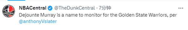 据勇士记者Anthony Slater报道,老鹰球星德章泰-穆雷是勇士队的潜在交易目标;目前穆雷的交易限制已经被解除,湖人、马刺、国王和尼克斯都有意穆雷,换言之,勇士加入穆雷争夺战,争夺湖人意中人。