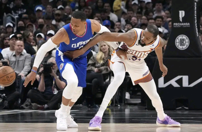 据统计,这是哈登、威少和杜兰特自2016年以来的首次同场竞技;如今杜兰特为太阳效力,哈登和威少在快船再次聚首。