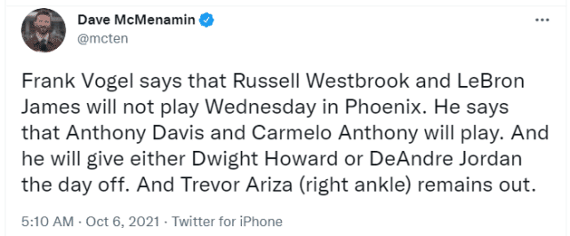 詹姆斯威少无缘战太阳!湖人四将高挂免战牌,安东尼将迎紫金首秀