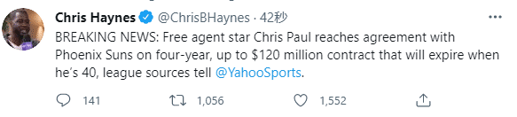 4年1.2亿美元!36岁保罗正式续约太阳,继续联手布克冲击总冠军