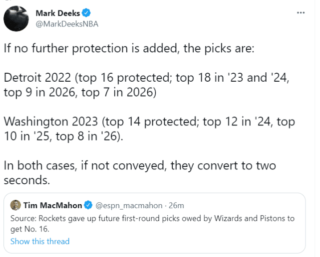 来源:24直播网07-30 19:5124直播网讯 北京时间7月30日,2021年选秀大会上,火箭用未来的两个受保护的首轮签(来自活塞和奇才),换来雷霆的首轮第16号签,并用16号签选中了土耳其超级联赛MVP阿尔佩伦-申京。NBA名记奥康纳感慨火箭这次选择大赚。