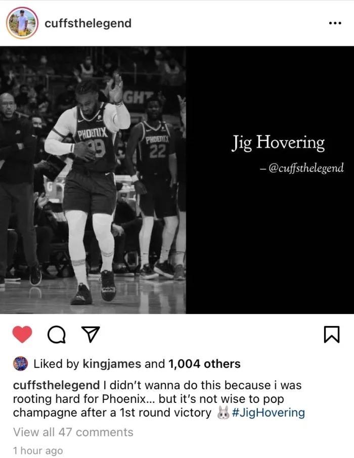 这位友人肯定是站在詹姆斯这边,而且也算是湖人球迷,所以他说道“我不想这么做,因为我在支持太阳……但是在首轮获胜后就喷洒香槟并不明智。”当时詹姆斯本人还点赞了,说明他也认同这一点,认为当时的克劳德太过“自傲”过了首轮就这样嚣张。