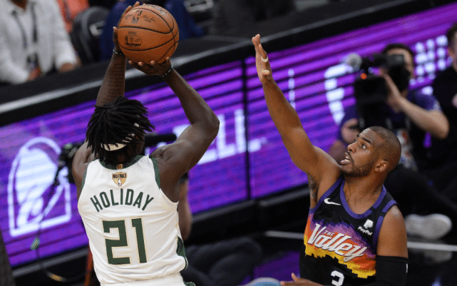 霍乐迪今天进攻端状态确实不佳,甚至错失了不少简单的上篮。而在双方的第一场较量中,霍乐迪也是14中4只得到10分。总决赛前两场比赛打完,霍乐迪一共35中11,命中率仅31.4%,这显然没有达到他个人的正常水准。值得一提的是,在看到霍乐迪打出如此糟糕的进攻后,很多雄鹿球迷提到了球队前任控球后卫布莱德索,血布的名字也冲上了热搜。