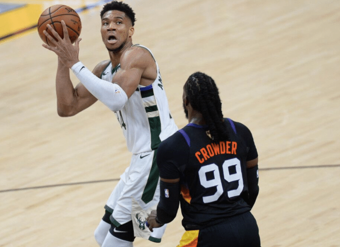 来源:24直播网07-09 14:5224直播网讯 太阳又赢了,只不过与G1不同,这是一场团队的胜利,首发五虎+卡梅伦约翰逊都很关键,也正是凭借着这样的表现让字母哥的42分变成了空砍!