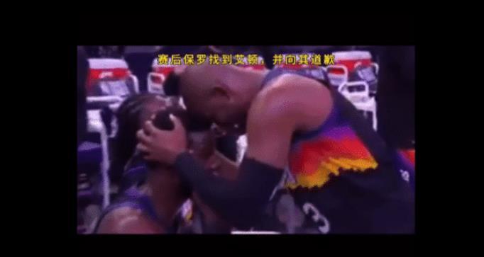 在搅黄了艾顿的纪录后,虽然球队获胜,但是保罗并没有参加庆祝,他第一时间来到了艾顿的身边向他道歉。