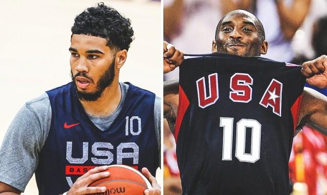 科比在湖人效力时穿过8号和24号,但他在帮助美国男篮夺得两块金牌时,穿的都是10号球衣。塔图姆在国家队穿过10号,并将在东京奥运会上再次身披这个号码,目标是帮助美国男篮连续第四次夺得奥运金牌。