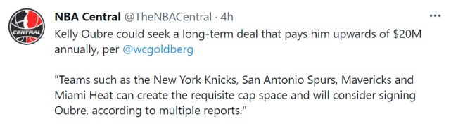 Goldberg报道称,这四支球队都能创造出相应的薪金空间,尼克斯、独行侠和热火本赛季都已打进季后赛,他们希望进一步提升阵容实力,至于无缘季后赛的马刺,拥有波波维奇这样的主教练,可以帮助球员变得更加出色。