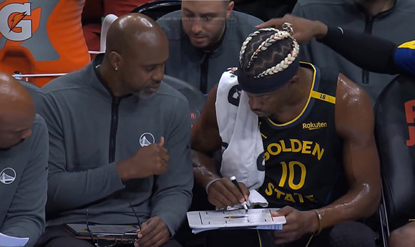下半场,勇士队一度打出6-0的小高潮,将分差缩小至6分,令现场局势陡然紧张起来。但老鹰队经验老到,迅速以一波8-0的攻势予以回应,稳住局面。随后,勇士继续顽强追分,再次将分差缩小至个位数。可当巴特勒下场休息时,勇士队进攻瞬间陷入停滞,老鹰队趁机发动一波凌厉攻势,瞬间将领先优势扩大到17分。即便巴特勒及时回归赛场,也未能改变局势,三节战罢,勇士以81-98落后。值得一提的是,在第三节期间,坐在替补席上的巴特勒主动为教练组成员画战术,这一场景引发了广泛热议,彰显出他对比赛的专注与积极参与。