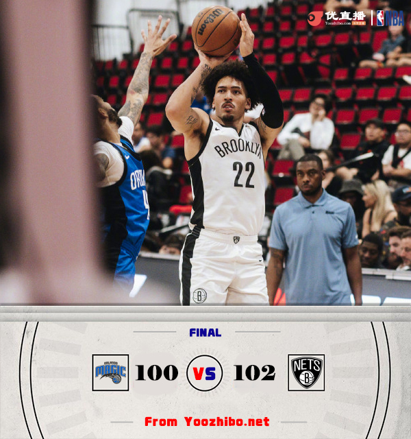 24直播网7月19日讯 NBA夏季联赛,魔术对阵篮网。开场后魔术多点开花率先打出攻势取得领先,篮网通过内线打开局面咬住比分。第二节在篮网克洛尼和威尔逊的带领下掀起反扑将比分反超。下半场魔术重新找回节奏咬住比分,第四节两队经过短暂的僵持后篮网再度建立起微弱优势,两队常规时间打平进入加时。加时两队打得依旧胶着,威尔逊打进绝杀球,最终篮网加时102-100击败魔术。