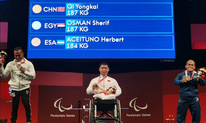 男子举重59公斤级决赛中,22岁的齐勇凯在三次试举中并不轻松,第一把试举183公斤失败,对手成功之后将他逼入到绝境。第二把185公斤齐勇凯,成功举起。第三把主要竞争对手奥斯曼重量是187公斤成功,后出场的中国选手也将重量调整至187公斤,他成功举起,重量相同但齐勇凯的体重更轻,57.75公斤VS58.41公斤,这也是中国队今天的第一块金牌。