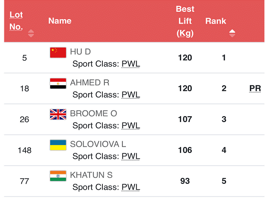 残奥举重女子50公斤级决赛,中国选手胡丹丹120公斤获得金牌,这是中国代表团本届残奥会第12枚金牌。埃及选手获得银牌,英国选手获得铜牌。值得一提的是埃及选手与胡丹丹的成绩一样,但胡丹丹体重更轻,如愿夺冠。