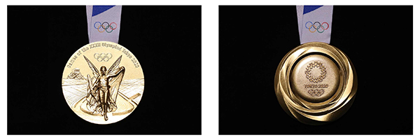 作为表彰选手荣誉的一部分,缎带的配色采用了2020年东京奥运的标志红色和樱花粉。设计采用日本传统的市松模样,既有仪式庆祝感,又体现了多样性融合。