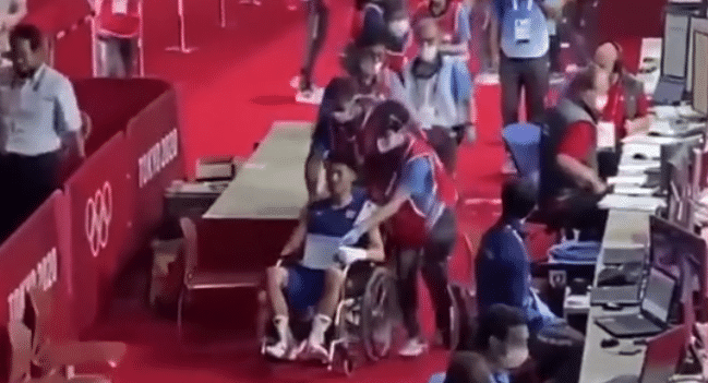 日本拳击手田中亮明战胜哥伦比亚拳击手马丁内兹打进四强,推着轮椅离开,但依旧算赢。值得一提的是在对阵中国选手胡建关的时候,田中亮明有很多犯规动作,都没有判罚,赛后中国选手发长文控诉,引发争议。