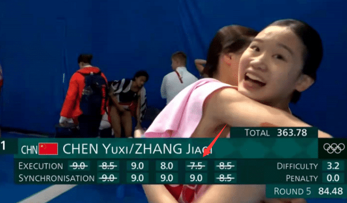 7月27日,女子双人10米台决赛,张家齐和陈芋汐的第5跳,也是最后一跳,被打了低分。可以看到两人的夺冠之跳,很多评委打了9分,少的也有8.5分,但却有一个7.5分,最后这一跳张家齐和陈芋汐表现确实完美,但却被压分,虽然无关乎金牌归属,但被打超低分,确实很不齿。