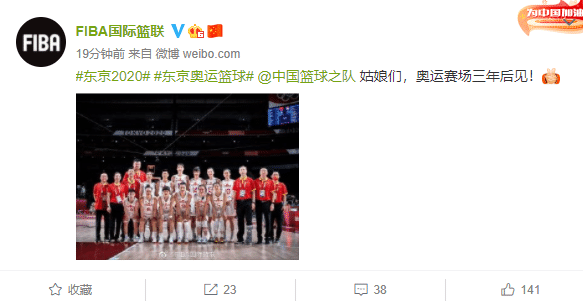 赛后国际篮联官方也在社交媒体上给中国女篮送上了祝福,称:“姑娘们,奥运赛场三年后见!”