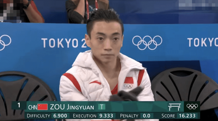第一个出场的是土耳其选手,他得到了15.633分,第二个出场的是中国选手邹敬园,他凭借着炸裂的表现得到了16.233分,难度6.9,完成度9.333,罕见的高完成度,邹敬园完成动作,解说员也是说道:这个金牌稳了。体操奥运冠军陈一冰更新新社交媒体说道:预贺园园拿下金牌,中国体操队第二枚。体操奥运冠军李小鹏更新社交媒体:高难度,高质量,落地稳,16.233有了。
