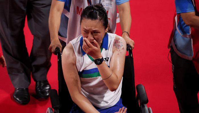 来源:24直播网07-29 11:3424直播网讯 北京时间7月29日,东京奥运会继续进行,在羽毛球女单比赛中,让人沮丧的消息传出。美国选手张蓓雯遭遇跟腱断裂的重伤,含泪离场,哭成了泪人,情绪崩溃了。