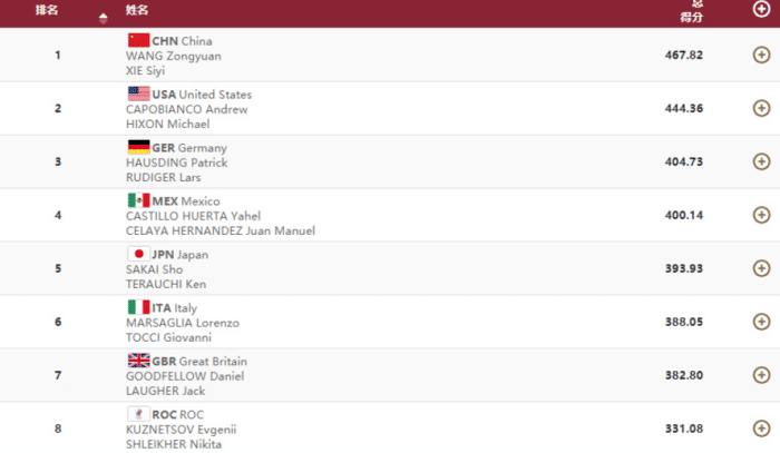 要知道的是在最后一个动作之前,俄奥队仅仅落后墨西哥不到3分,位居第四,很有希望冲击奖牌的。但是最后一跳,他们是0分,直接跌到了倒数第一,也就是第八名,草草收尾。