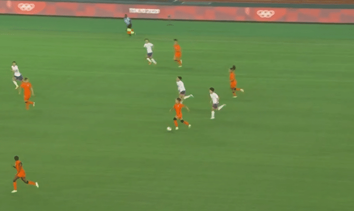 下半场的比赛开始后,中国女足再丢一球,范埃斯下底传中,马滕斯头球破门,荷兰队4:1领先中国女足。比赛进行到第65分钟,荷兰再进一球,米德玛左脚推射破门,荷兰队5:1领先中国队,中国女足上演了大崩盘,镜头给到中国队主教练贾秀全指导,他也是一脸的落寞。比赛第68分钟王妍雯推射破门,为中国女足扳回一个,比赛第70分钟,71分钟连进2个,71分钟的时间中国队被灌7个球,76分钟荷兰队再进一球,目前两队的比赛仍在继续。