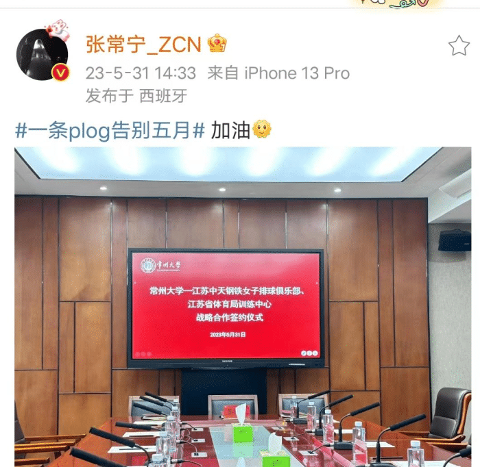 张常宁的下家在哪里呢?近期,张常宁在社交媒体上上传了一张照片,这张照片上显示的内容是“常州大学——江苏中天钢铁女子排球俱乐部、江苏省体育局训练中心战略合作签约仪式”的照片,显然张常宁肯定是签约仪式的参与者之一,否则张常宁绝对不会发布这样的照片,而且在这一张照片中,张常宁也是配文:加油。