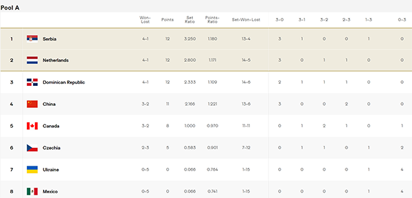 中国女排的最好的结果,是在面对多米尼加的比赛中取得3-0或者3-1的胜利,这样积分来到14分。不论塞尔维亚VS荷兰队的结果是如何,中国女排都可以重返A组前两名,在末轮来袭之前占据主动权。