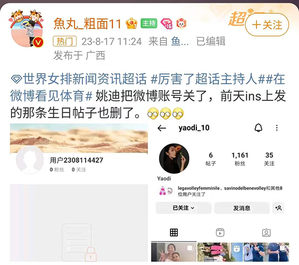 姚迪接受的这一次风暴又多大呢?在发现来势凶猛的球迷后,姚迪删除了自己和朱婷的庆生照片,可即便如此,还是挡不住球迷的质疑,随后姚迪关闭了社交媒体的评论,可是当球迷质疑两人不好好康复驰援女排的声音四起的时候,21时,姚迪这边也是做出了反应,姚迪直接把自己的社交媒体账号给关闭了,姚迪也是用自己强硬的态度回应了部分球迷的质疑。