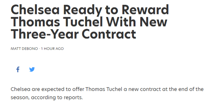 24直播网讯 图赫尔接替兰帕德时,签订了一份18个月的短合同。本赛季他率队晋级足总杯和欧冠决赛,联赛前四也基本锁定了。