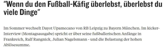 来源:24直播网05-04 11:1424直播网讯 据德国媒体《踢球者》报道,于帕梅卡诺在接受采访时表示,自己16岁时就有机会加盟拜仁,但母亲建议他保持耐心。