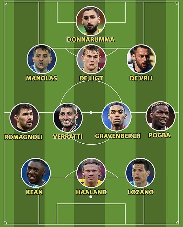 中场:罗马尼奥利(AC米兰)、瑞恩-格伦伯奇(阿贾克斯)、维拉蒂(巴黎圣日耳曼)、博格巴(曼联)