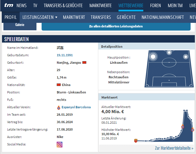 德转更新球员身价:姆巴佩下跌至1.6亿!武磊身价下滑至400万!