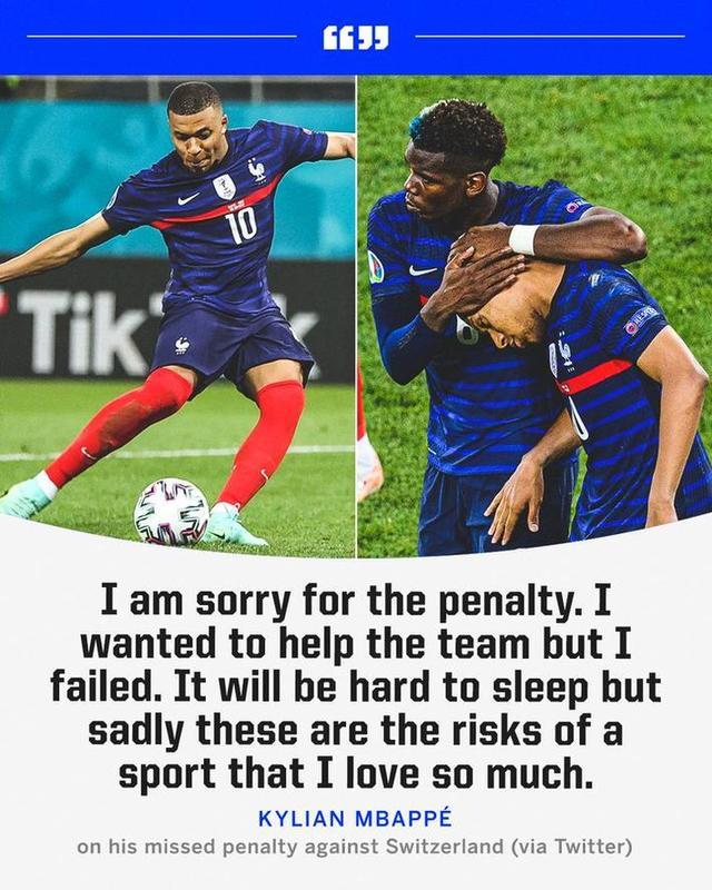 来源:24直播网06-29 14:4224直播网讯 今天凌晨,法国在欧洲杯1/8决赛的点球大战中爆冷遭到瑞士淘汰,罚丢点球的姆巴佩在赛后接受了媒体采访。