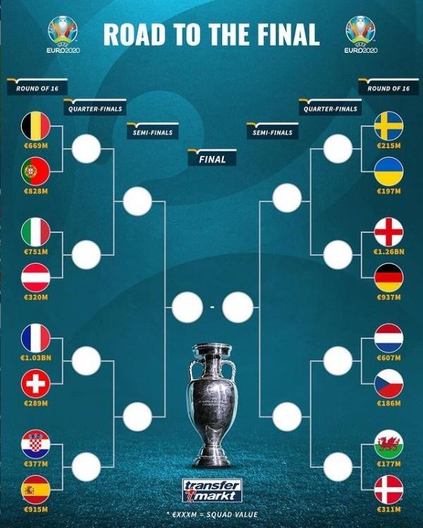来源:24直播网06-27 11:0824直播网讯 此前,欧洲杯16强在已经确定了对阵,德国转会市场也统计了各组对决的身价情况: