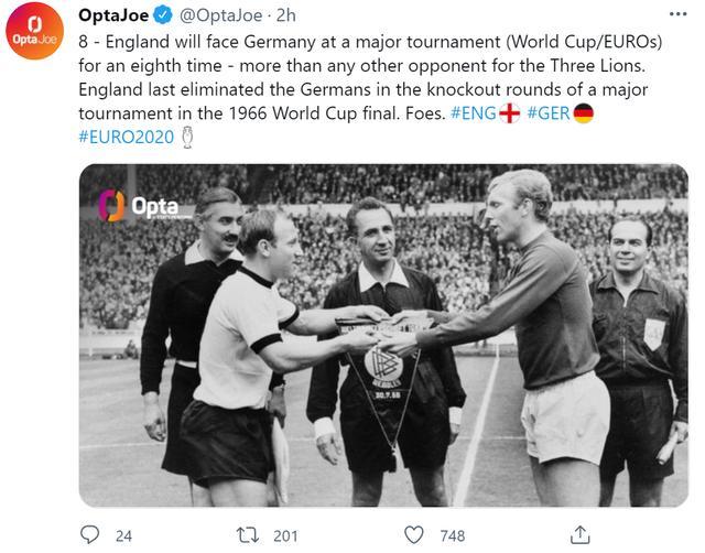 来源:24直播网06-24 11:2824直播网讯 据OPTA数据统计,英格兰将第八次在国际大赛(世界杯、欧洲杯)淘汰赛中遭遇德国,而三狮军团已经有55年未在国际大赛淘汰赛中击败过德意志战车了。