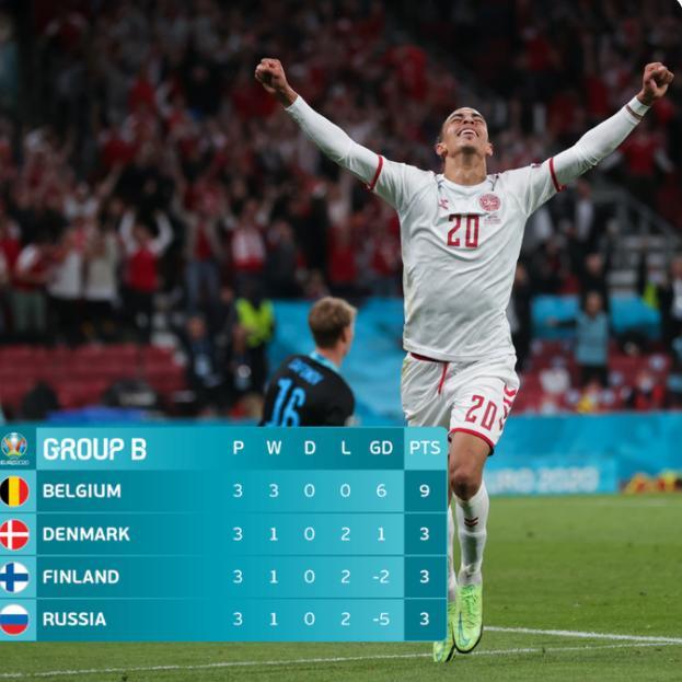 自此,丹麦也成为欧洲杯历史上首支前两场小组赛输球但仍出线的球队。丹麦队长克亚尔此前曾向昏迷的埃里克森承诺自己一定会带队进入16强,而现在他做到了。