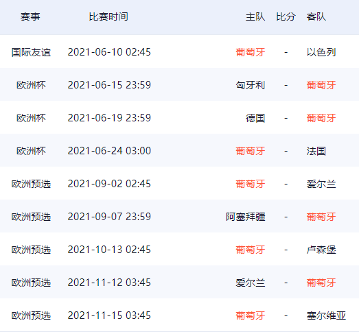 葡萄牙队欧洲杯26人球员大名单及赛程一览