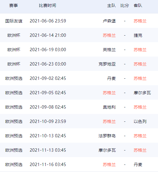 苏格兰队欧洲杯26人球员大名单及赛程一览